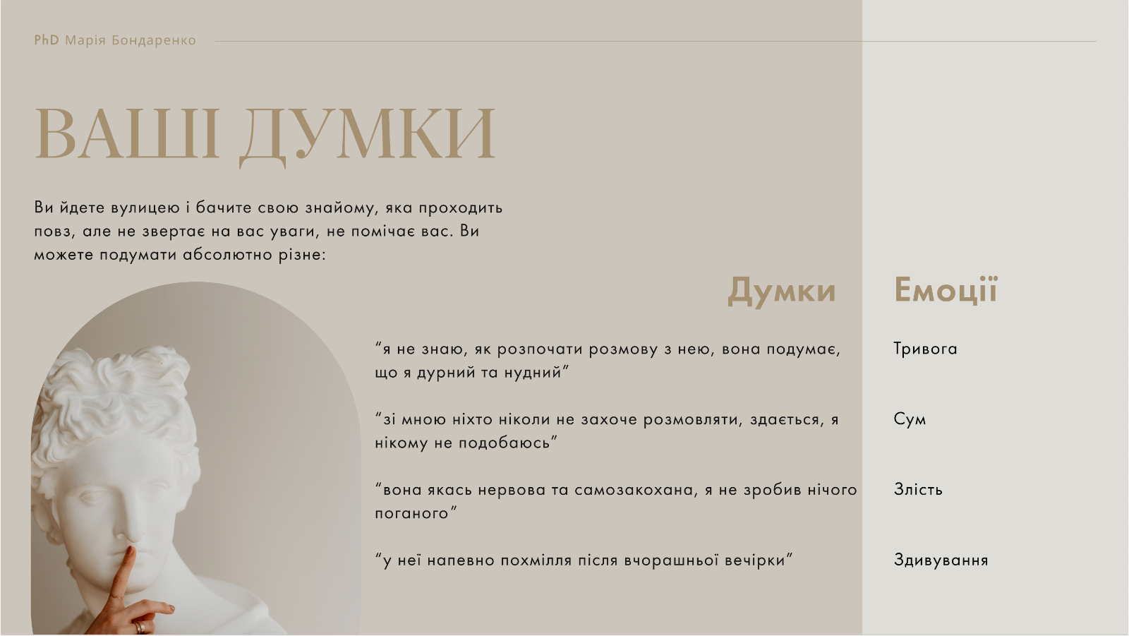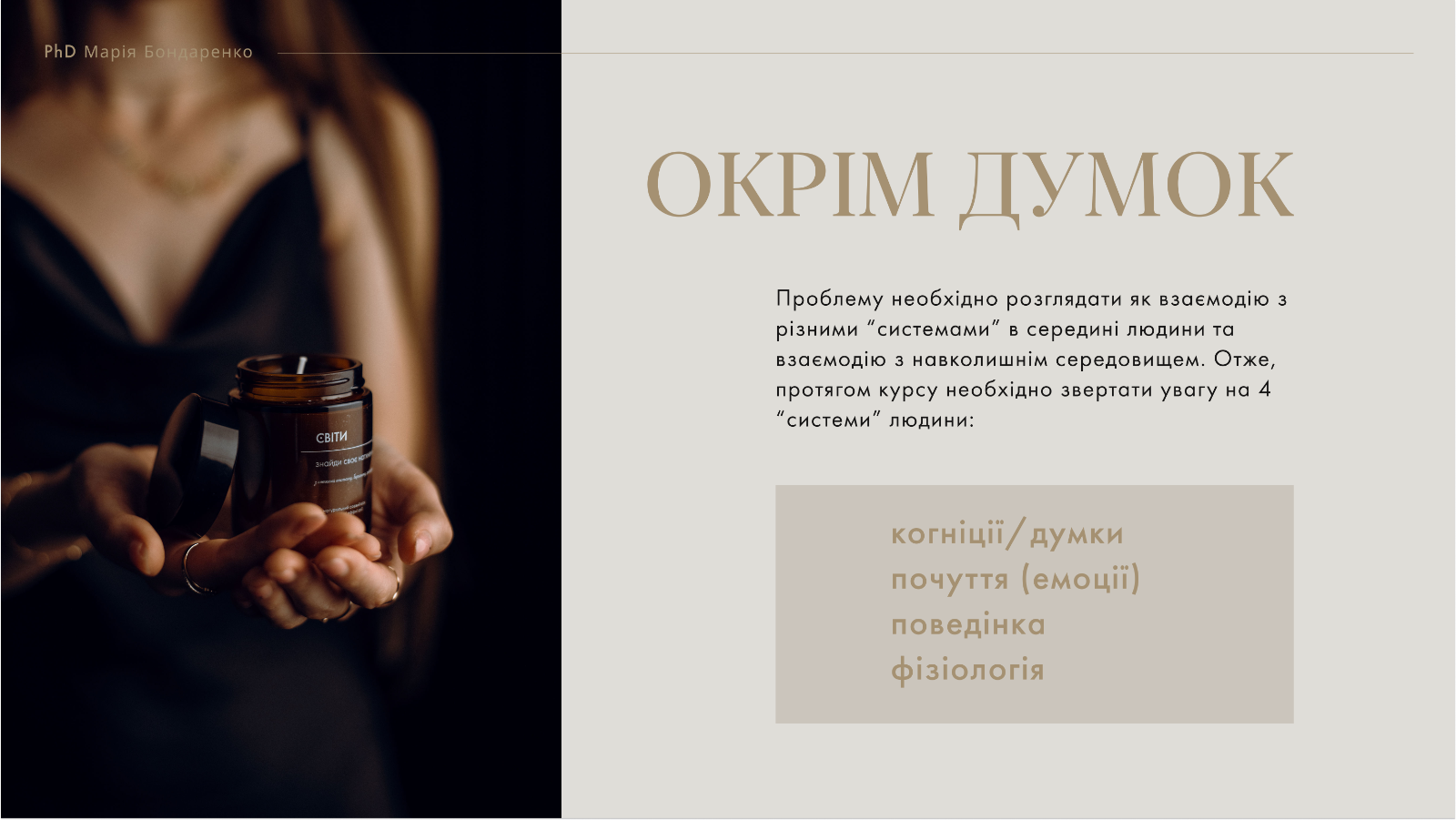 Курс розкриває секрети когнітивно-поведінкової терапії (КПТ), занурюючи учнів у глибини свого внутрішнього світу. Через детальний розбір реальних кейсів, практичні вправи та глибоке теоретичне підґрунтя, курс веде вас шляхом осмислення та переосмислення власних думок, емоцій та поведінки. Ви дізнаєтеся, як ідентифікувати та трансформувати негативні патерни мислення, ефективно керувати стресом та емоціями, і навчитесь будувати здорові відносини з собою та оточуючими.